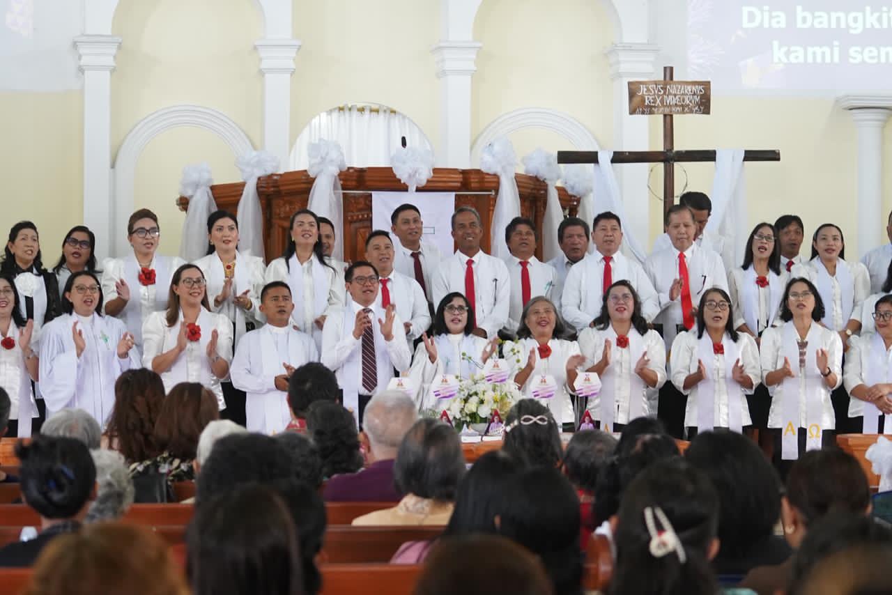 MinutSulutkita.com–Suasana penuh sukacita iman mewarnai perayaan Paskah di lingkup Gereja Masehi Injili di Minahasa (GMIM). Bupati Minahasa Utara, Pnt Dr Joune Ganda, turut membaur bersama jemaat dalam ibadah syukur Hari Raya Paskah yang digelar di GMIM Immanuel Kaima, Wilayah Minawerot, Minggu (5/4/2026).