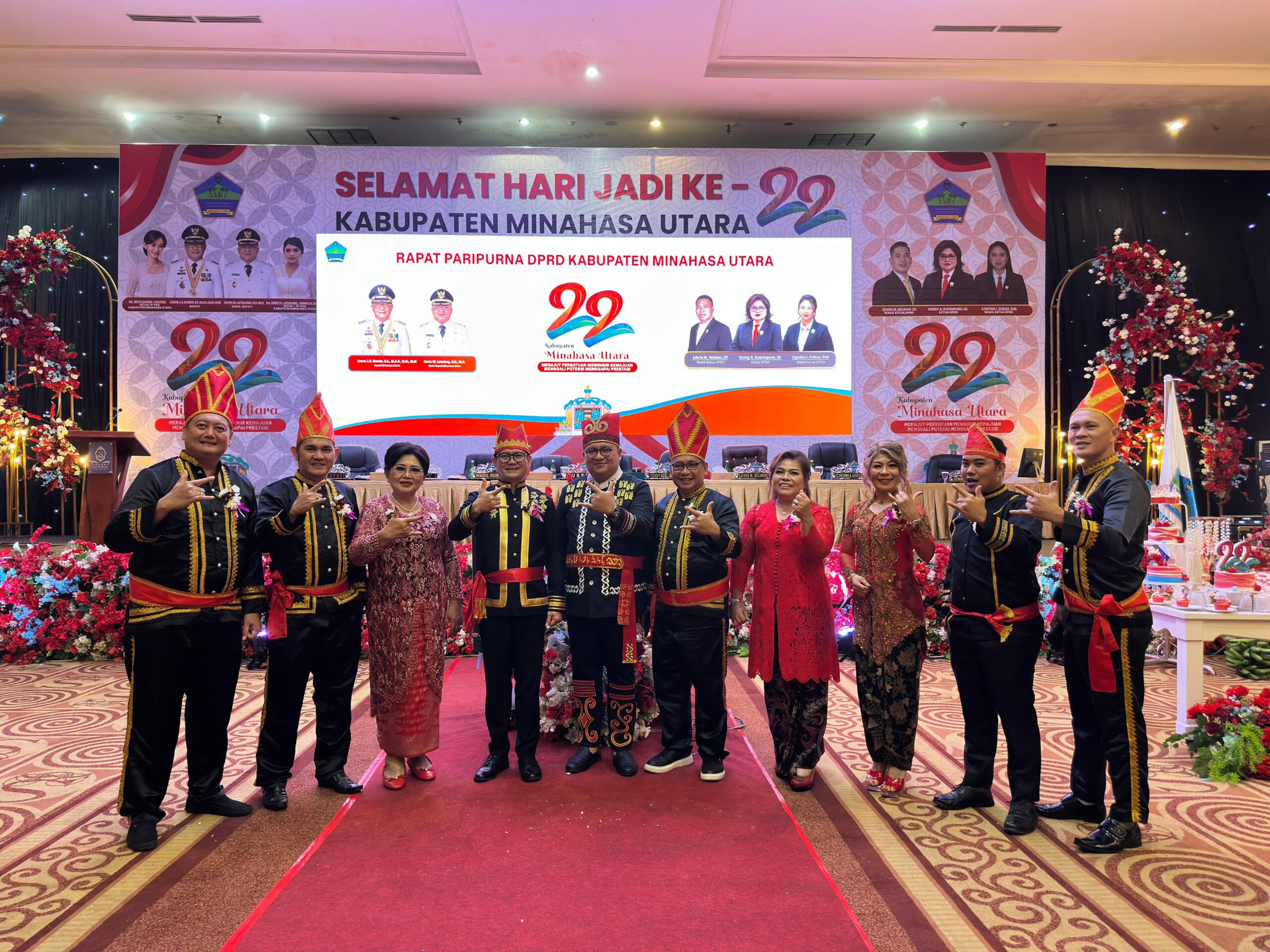 MinutSulutkita.com–Peringati Hari Ulang Tahun Kabupaten Minahasa Utara yang ke-22, Dewan Perwakilan Rakyat Daerah (DPRD) Minahasa Utara menggelar rapat paripurna istimewa di Sutan Raja Hotel, Maumbi, Kamis (20/11/25).