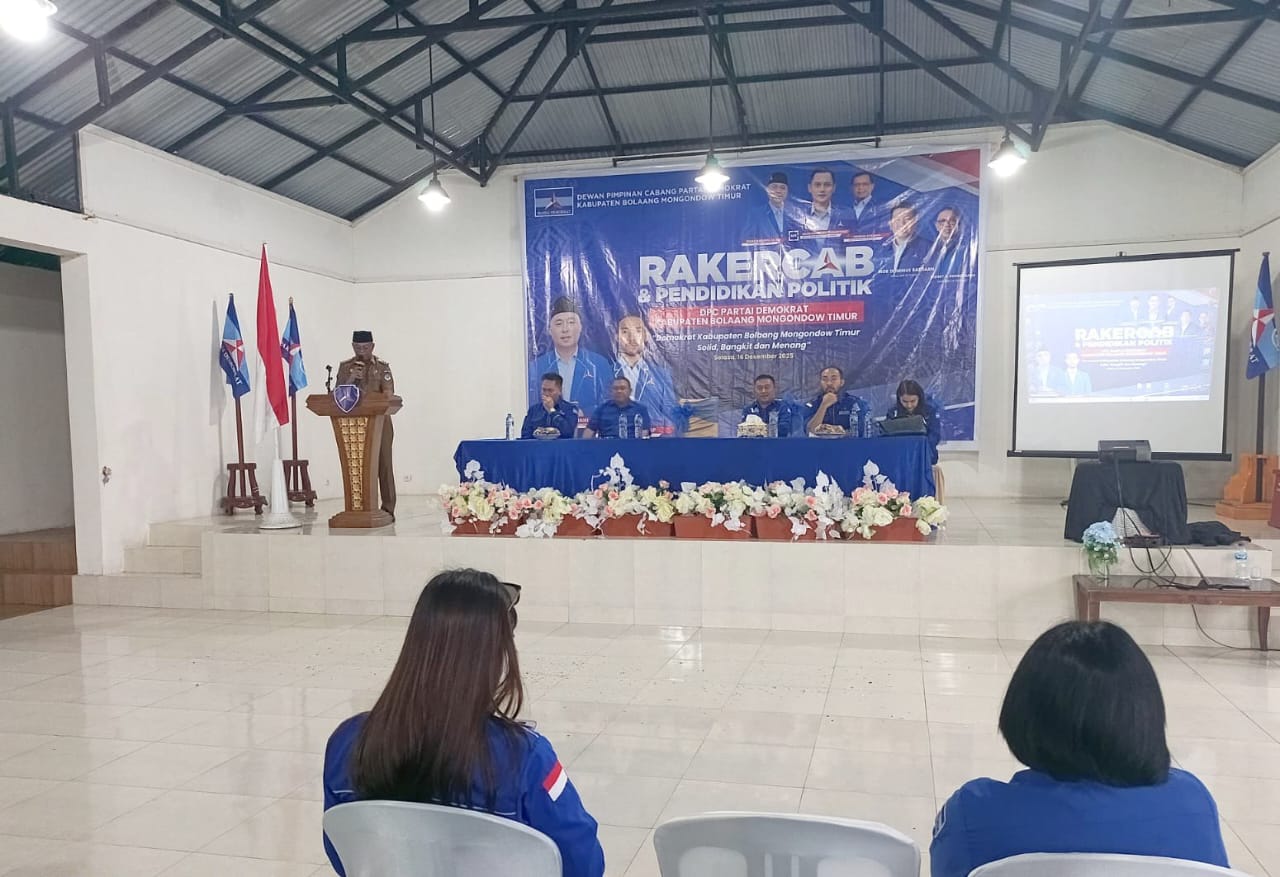 BoltimSulutkita.com–Bupati Bolaang Mongondow Timur (Boltim), Oskar Manoppo, menghadiri dan secara resmi membuka Rapat Kerja Cabang (Rakercab) yang dirangkaikan dengan Pendidikan Politik Dewan Pimpinan Cabang (DPC) Partai Demokrat Boltim. Kegiatan tersebut digelar di Cafe Goba Molunow, Kecamatan Mooat, Selasa (16/12/2025) sore.