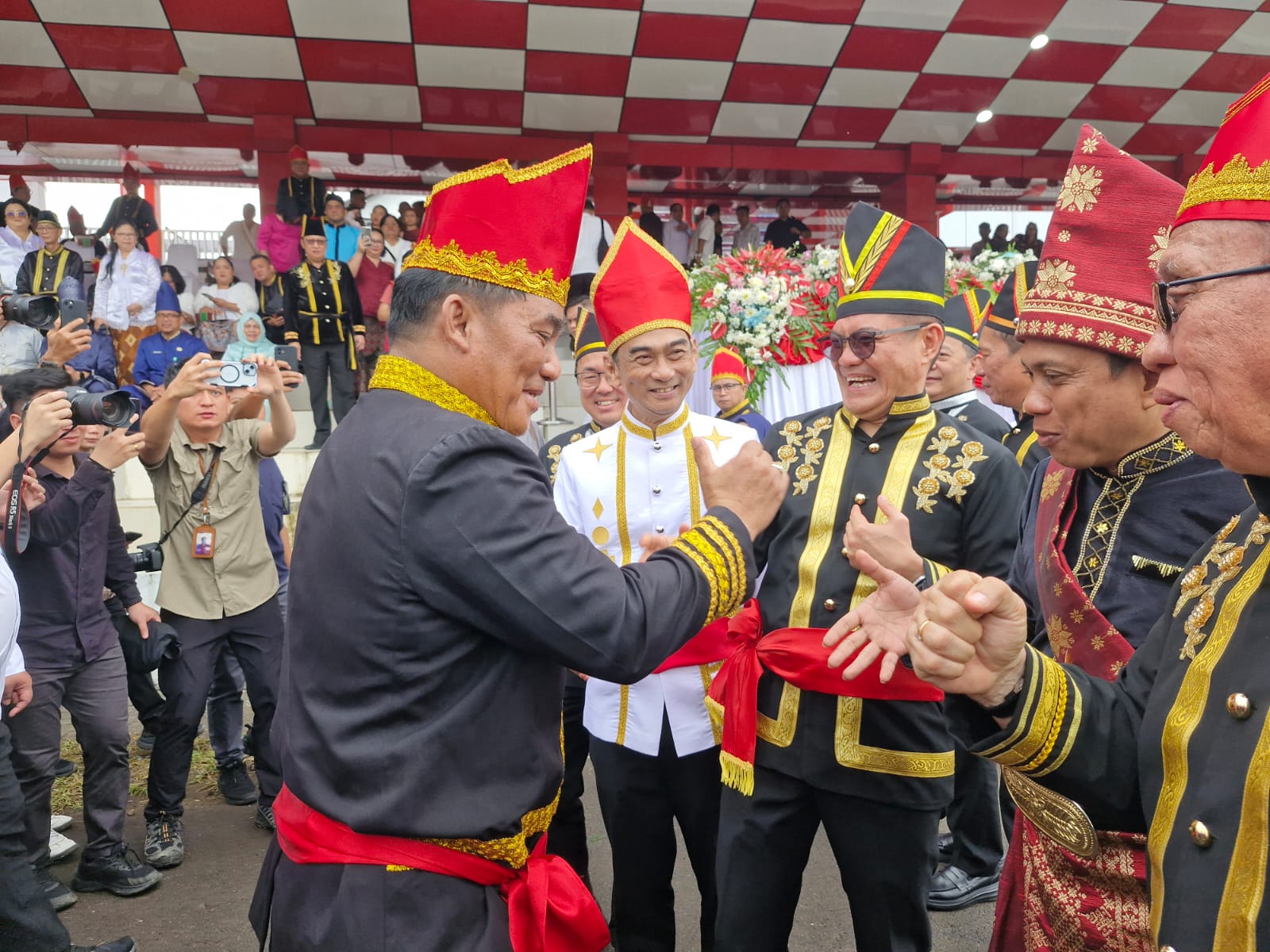 Bupati Minut Joune Ganda nampak menggunakan pakaian adat Minahasa begitu antusias hadir di acara tersebut bersama Gubernur Sulut Mayjen TNI (Purn) Yulius Selvanus SE.