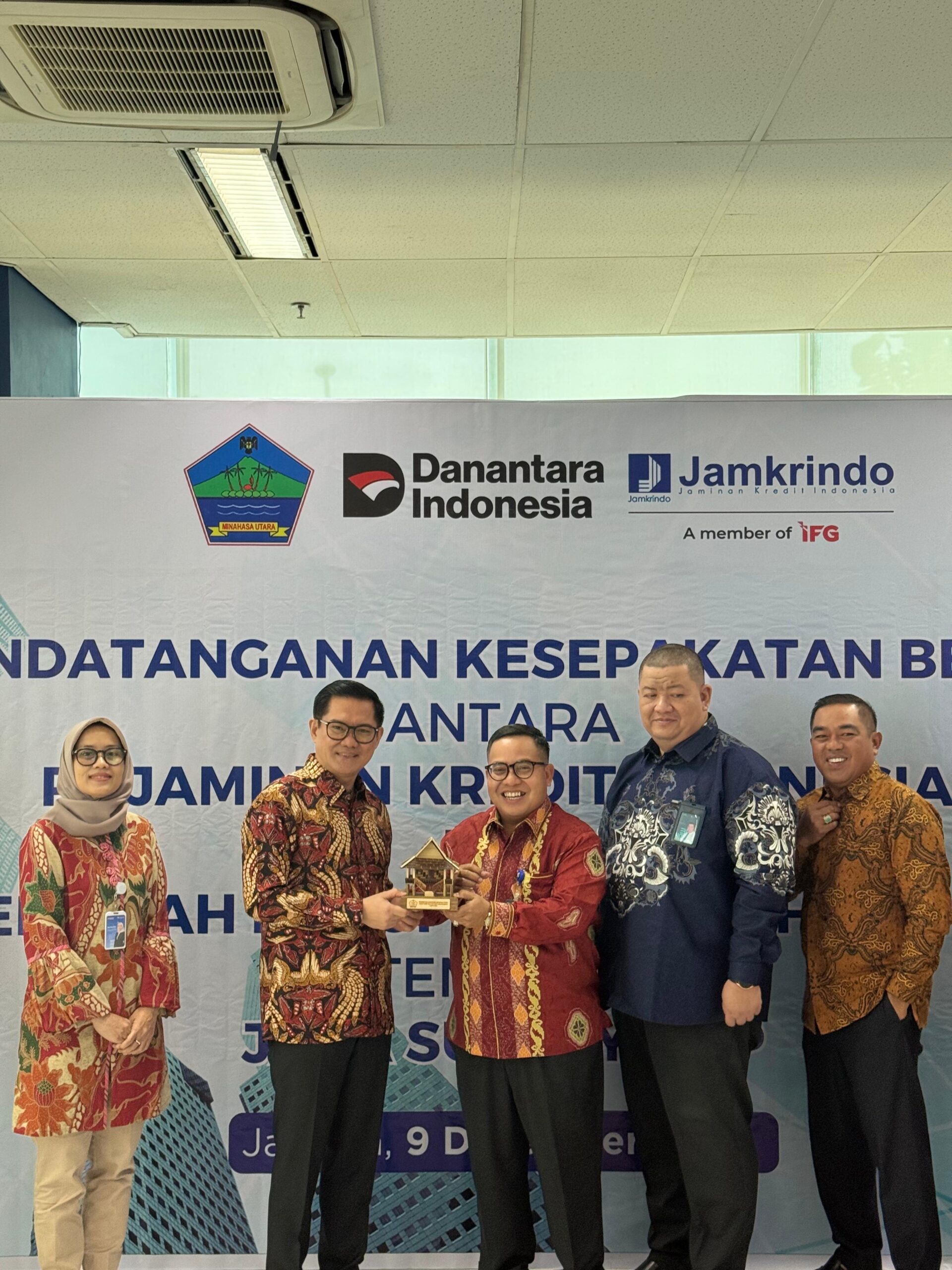 Penandatanganan kesepakatan dilakukan Bupati Minahasa Utara Joune J. E. Ganda bersama Plt. Direktur Utama PT Jamkrindo Abdul Bari di Kantor Pusat Jamkrindo, Jakarta, Selasa (9/12/2025).