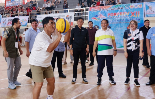 Dan Gubernur Yulius pun mencoba melakukan shoting bola kedalam ring dan berhasil mencetak dua poin yang langsung disoraki para penonton yang hadir.
