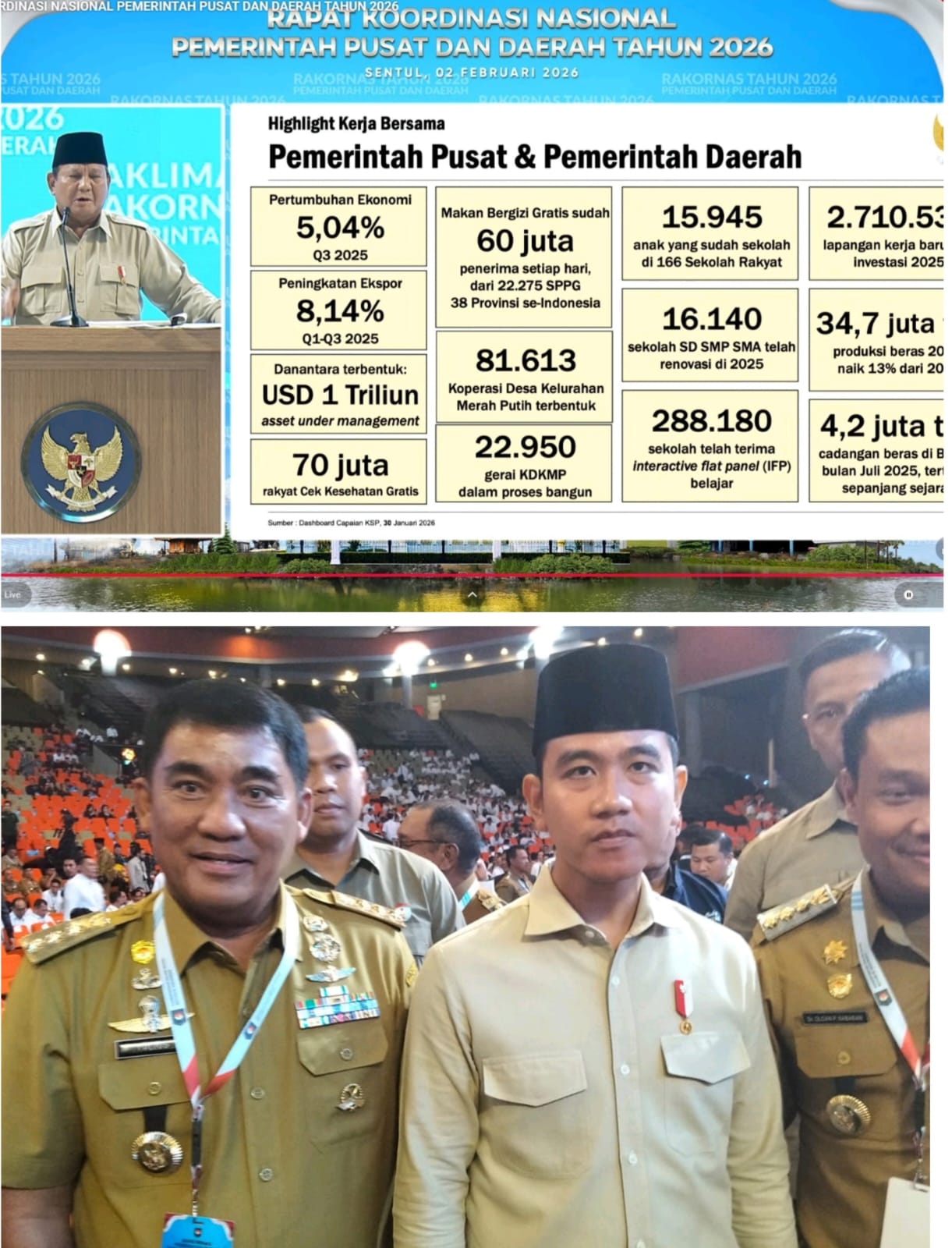 Hal ini terbukti saat kepala daerah pilihan rakyat itu menghadiri langsung Rapat Koordinasi Nasional (Rakornas) Pemerintah Pusat dan Daerah tahun 2026 yang digelar di Sentul Internasional Convention Center (SICC), Bogor, Senin (2/2/2026).