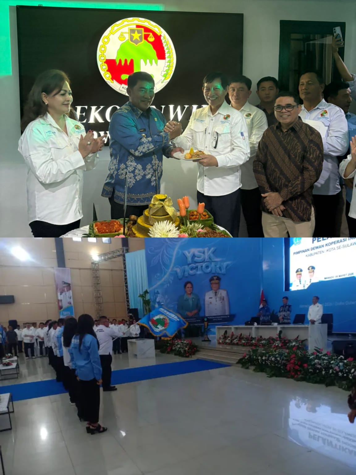 Peresmian tersebur ditandai dengan pemotongan pita oleh Gubernur Sulut dilanjutkan dengan pemotongan tumpeng bersama jajaran Dekopinwil Sulut dan Dekopinda Kabupaten/Kota.(fjr/*)