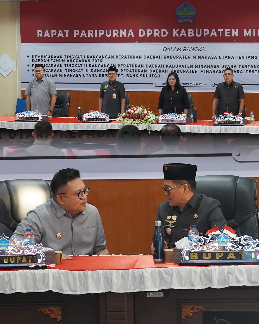 Sementara itu, dalam kesempatan tersebut, Bupati Minahasa Utara Joune Ganda menyampaikan pengantar nota keuangan Ranperda APBD Tahun Anggaran 2026. Ia mengawali sambutannya dengan rasa syukur karena rapat dapat terlaksana dalam suasana sukacita dan kebersamaan.