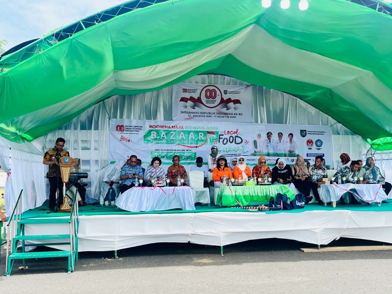 Kemeriahan ini merupakan bagian dari Bazaar UMKM dan Kuliner dalam rangka peringatan HUT ke-80 Republik Indonesia, yang secara resmi dibuka oleh Wakil Bupati Bolaang Mongondow, Dony Lumenta.