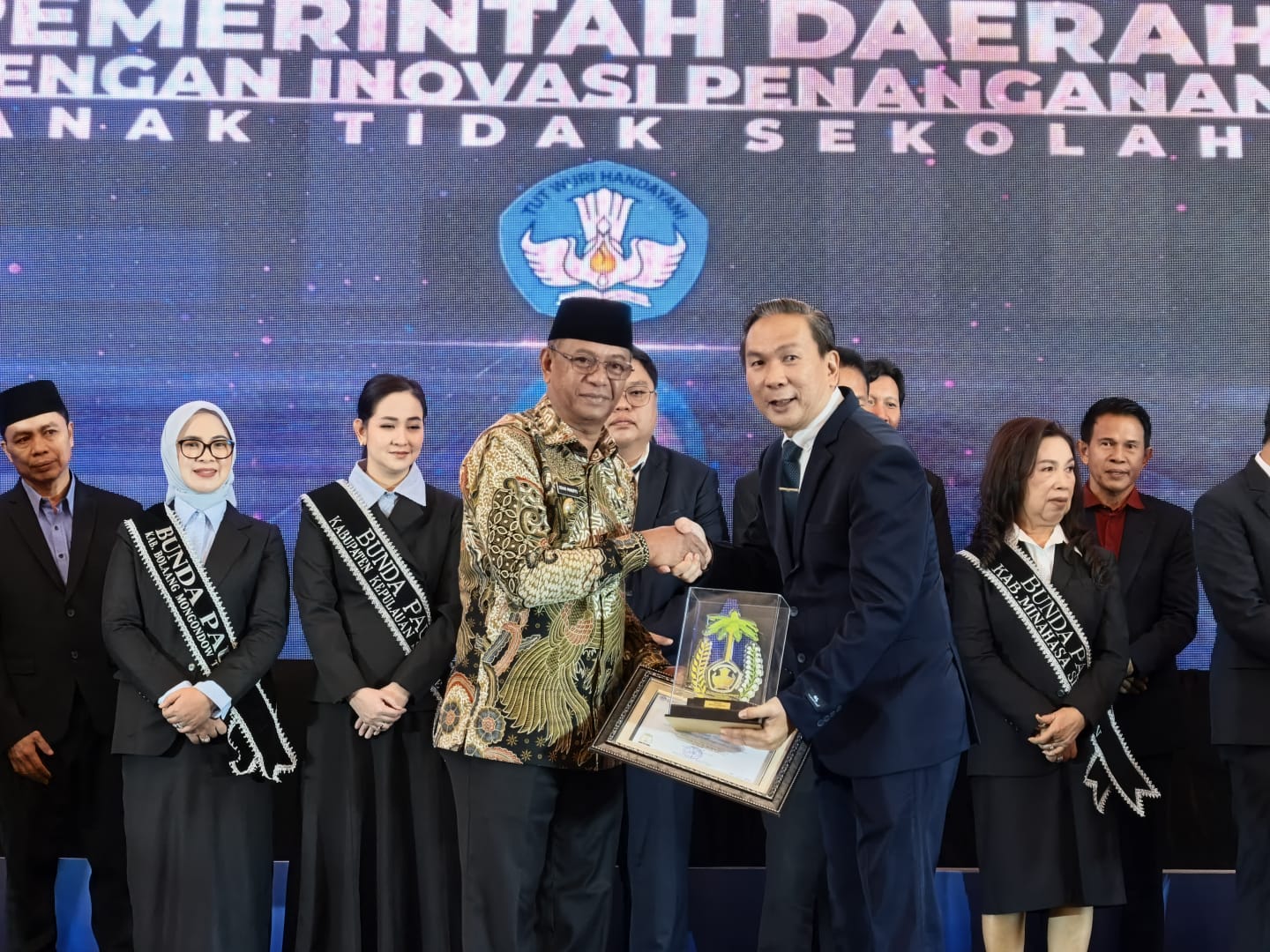 Penghargaan pertama yang diberikan yaitu pemerintah daerah terbaik dalam kategori inovasi penanganan anak tidak sekolah, berkat kebijakan dan program terobosan yang dinilai efektif menekan angka anak putus sekolah.