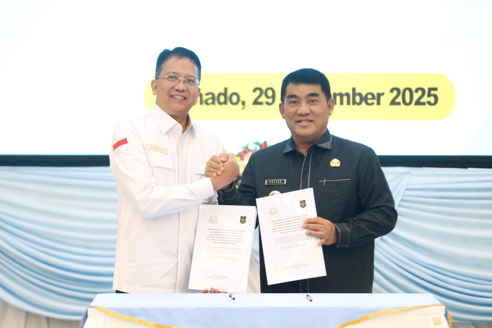 Serah terima tersebut digelar di Wisma Negara Bumi Beringin, Manado, Senin (29/12/2025). Hal ini tentunya berkat kekompakan yang dilakukan antara Kejaksaan Republik Indonesia bersama Kementerian Kelautan dan Perikanan (KKP) serta Pemprov Sulut dalam pemanfaatan aset negara.