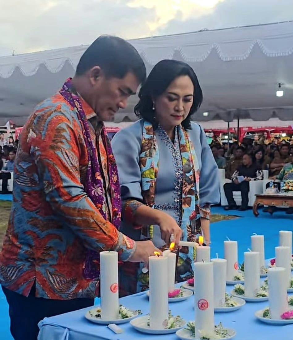 Didampingi istri tercinta Ny Anik Yulius Selvanus, yang juga merupakan Ketua TP-PKK Sulut, Gubernur YSK juga turut dibersamai Wakil Gubernur Victor Mailangkay di perayaan Pra Natal yang diselenggarakan Pemerintah Kota Bitung, Senin (15/12/2025).