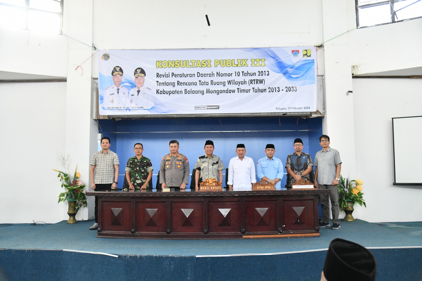 BoltimSulutkita.com–Mewakili Bupati Oskar Manoppo, Wakil Bupati Argo V. Sumaiku secara resmi membuka kegiatan Konsultasi Publik Revisi Peraturan Daerah Nomor 10 Tahun 2013 tentang Rencana Tata Ruang Wilayah (RTRW) Kabupaten Bolaang Mongondow Timur Tahun 2013–2033. Kegiatan strategis tersebut digelar di Aula Kantor Bupati pada Kamis (19/2/2026) dan dihadiri berbagai unsur pemangku kepentingan.