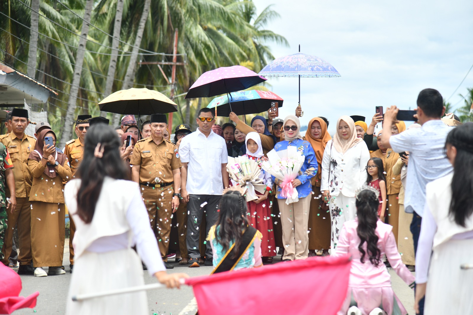 Suasana semakin semarak saat drumband sekolah mengiringi langkah Ketua TP-PKK bersama Dewi Athena, yang berjalan menyapa para siswa SMP Negeri 1 Kotabunan dan SD Negeri 2 Buyat II.