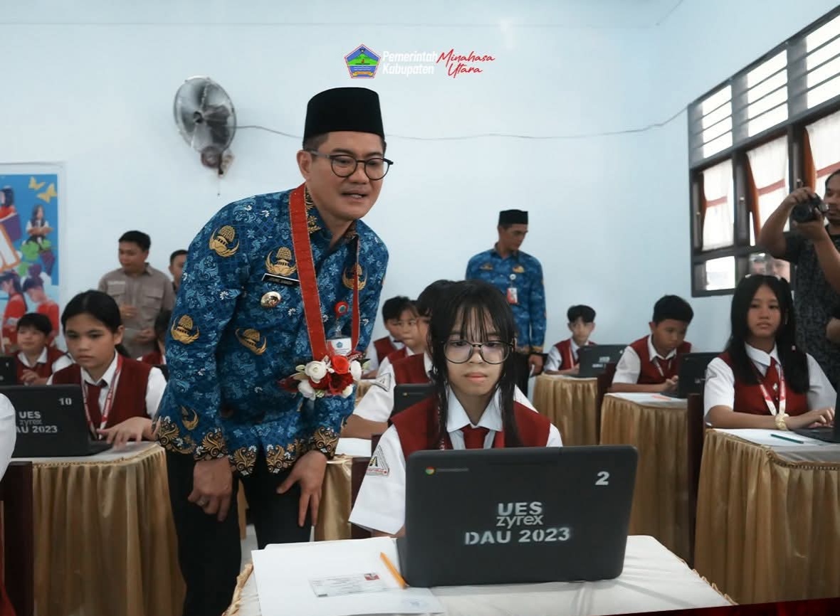 Hal ini terbukti saat bupati Minut Joune Ganda sejak beberapa waktu lalu secara bertahap mulai dari jenjang Sekolah Menengah Pertama (SMP) memantau langsung Tes Kemampuan Akademik (TKA) para siswa.
