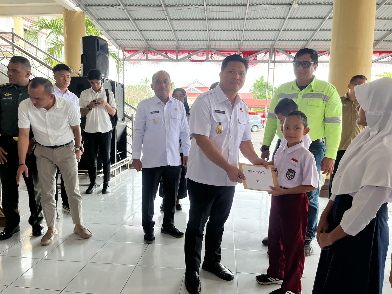 Penyaluran bantuan beasiswa ini turut dihadiri oleh Wakil Bupati Dony Lumenta, Sekretaris Daerah Abdullah Mokoginta, Wakil Ketua DPRD Febrianto Tangahu, serta unsur Forkopimda dari TNI dan Polri.