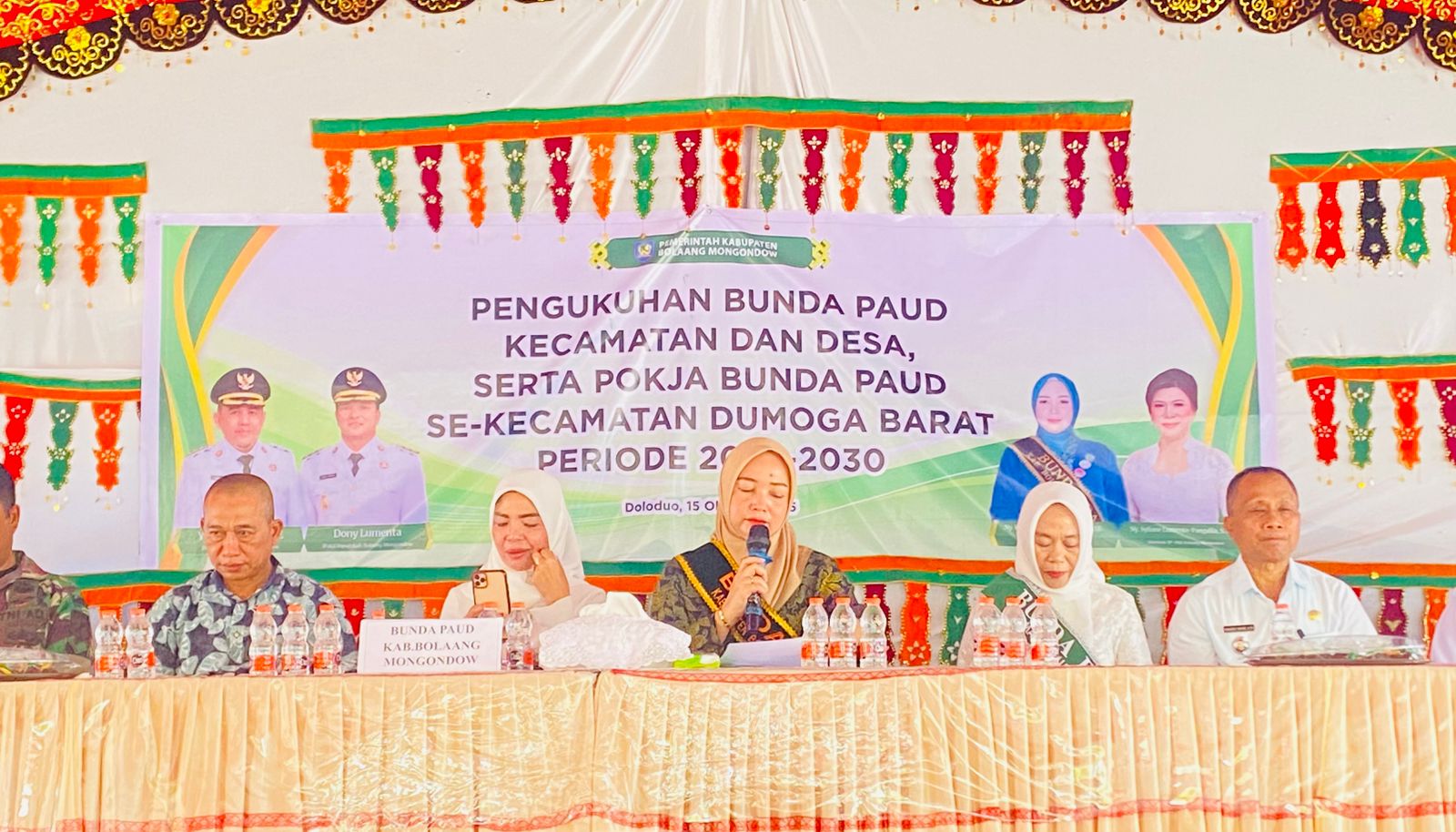 BolmongSulutkita.com–Dalam rangka memperkuat peran Bunda PAUD di tingkat lokal, Ketua Bunda PAUD Kabupaten Bolaang Mongondow, Kalsum Alhabsyi SE, resmi melantik Bunda PAUD tingkat Kecamatan hingga Desa se Kecamatan Dumoga Barat.