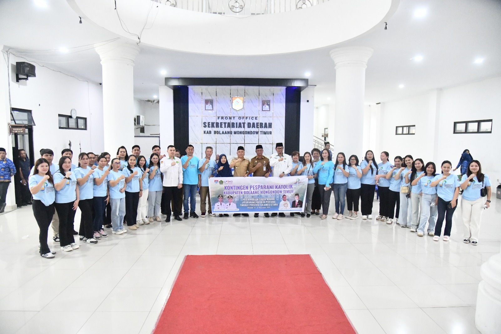 BoltimSulutkita.com–Bupati Bolaang Mongondow Timur (Boltim), Oskar Manoppo, didampingi Wakil Bupati Argo V. Sumaiku, secara resmi melepas Kontingen Pesta Paduan Suara Rohani (Pesparani) Katolik Kabupaten Boltim yang akan berlaga pada Pesparani Katolik Daerah Pertama Tingkat Provinsi Sulawesi Utara, di Kantor Bupati Boltim, Senin (17/11/2025).