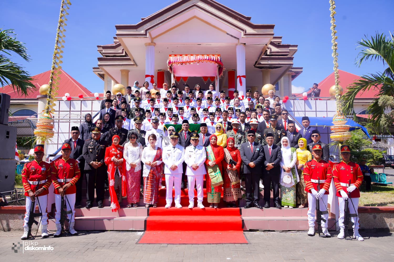 Upacara turut dihadiri Wakil Bupati Doni Lumenta bersama istri, Sekretaris Daerah Bolmong Abdulah Mokoginta, jajaran Forkopimda, pimpinan dan anggota DPRD Bolmong, para kepala perangkat daerah, TNI-Polri, ASN, camat, lurah, sangadi, tokoh agama, pelajar, serta sejumlah tamu undangan lainnya.(Advetorial)
