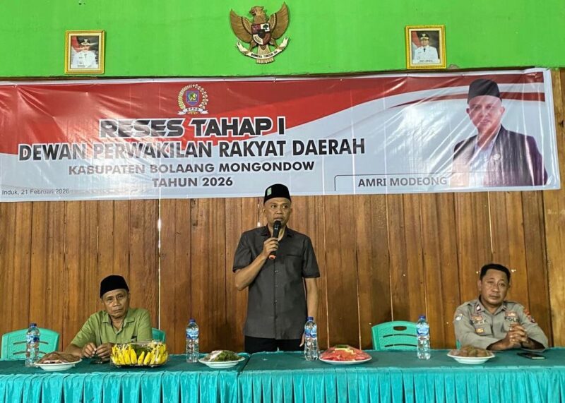 BolmongSulutkita.com–Anggota DPRD Kabupaten Bolaang Mongondow dari Fraksi PKB, Amri Modeong, S.I.P menggelar reses perdana Masa Sidang I Tahun 2026 di Desa Doloduo, Kecamatan Dumoga Barat, Sabtu (21/02/2026).