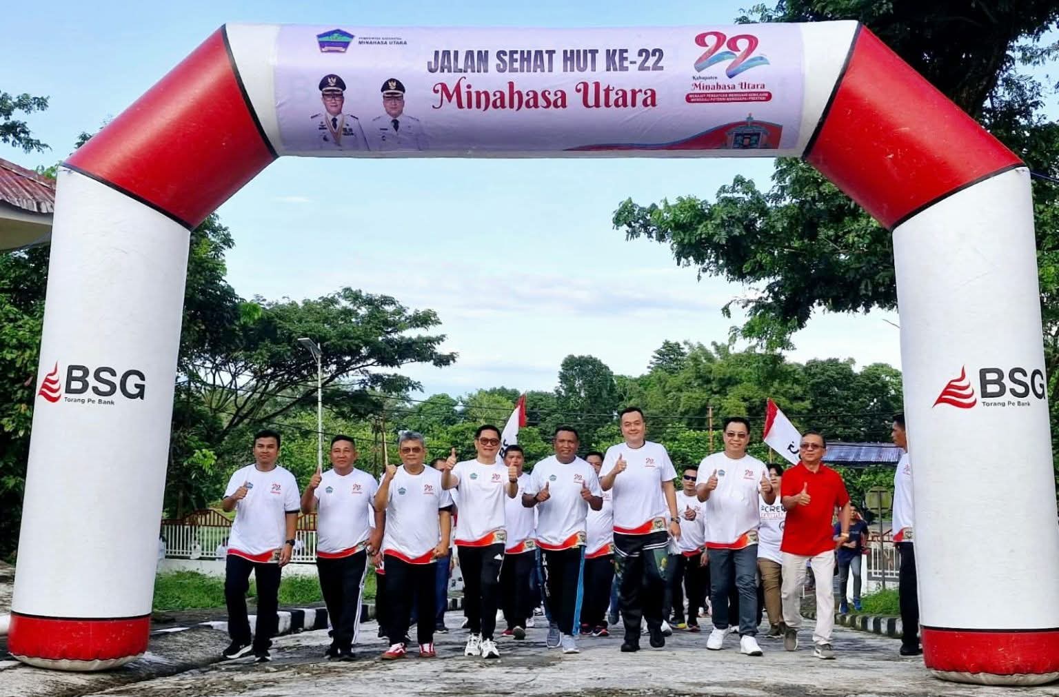 Kegiatan diawali dengan jalan sehat yang diikuti seluruh jajaran Aparatur Sipil Negara (ASN) dilingkup Pemkab Minut, Forkopimda serta stakeholder itu, mengambil start di JG Center bilangan jalan Soekarno kemudian finish di lapangan kantor Bupati Minahasa Utara.