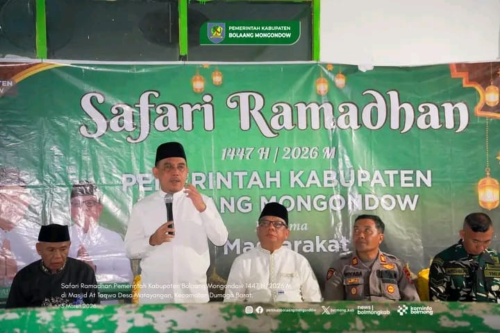 BolmongSulutkita.com – Pemerintah Kabupaten Bolaang Mongondow (Bolmong) kembali menggelar Safari Ramadan 1447 Hijriah yang kali ini berlangsung di Desa Matayangan, Kecamatan Dumoga Barat. Kegiatan dipusatkan di Masjid At-Taqwa pada Selasa (3/3/2026).