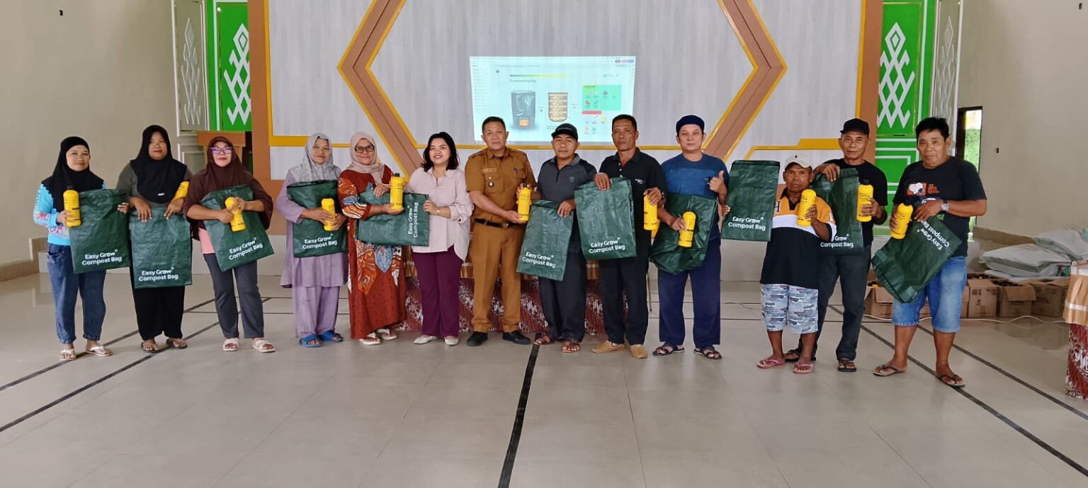 Sebanyak 200 rumah tangga menerima bantuan berupa kompos bag (tas komposter) berkapasitas 200 liter serta cairan EM4 sebagai aktivator pengurai sampah organik.