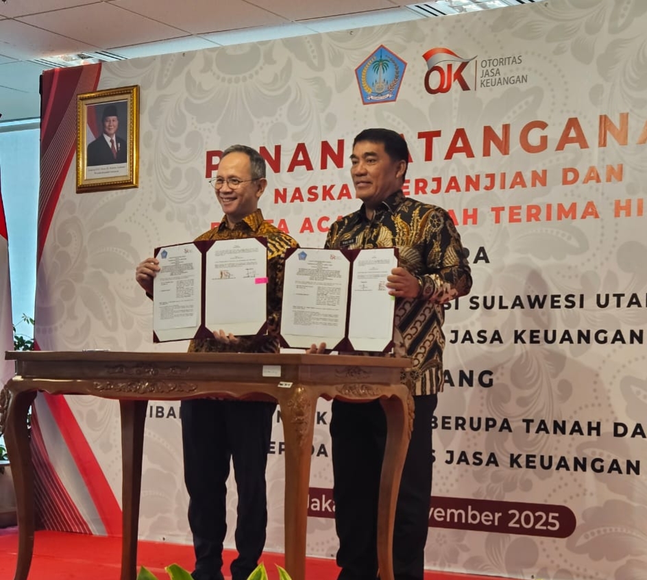 JakartaSulutkita.com–Sebagai bentuk kemitraan antar lembaga penyelenggara negara, Pemerintah Provinsi Sulawesi Utara (Sulut) secara resmi menyerahkan hibah aset kepada Otoritas Jasa Keuangan (OJK), di Jakarta Rabu (5/11/2025).