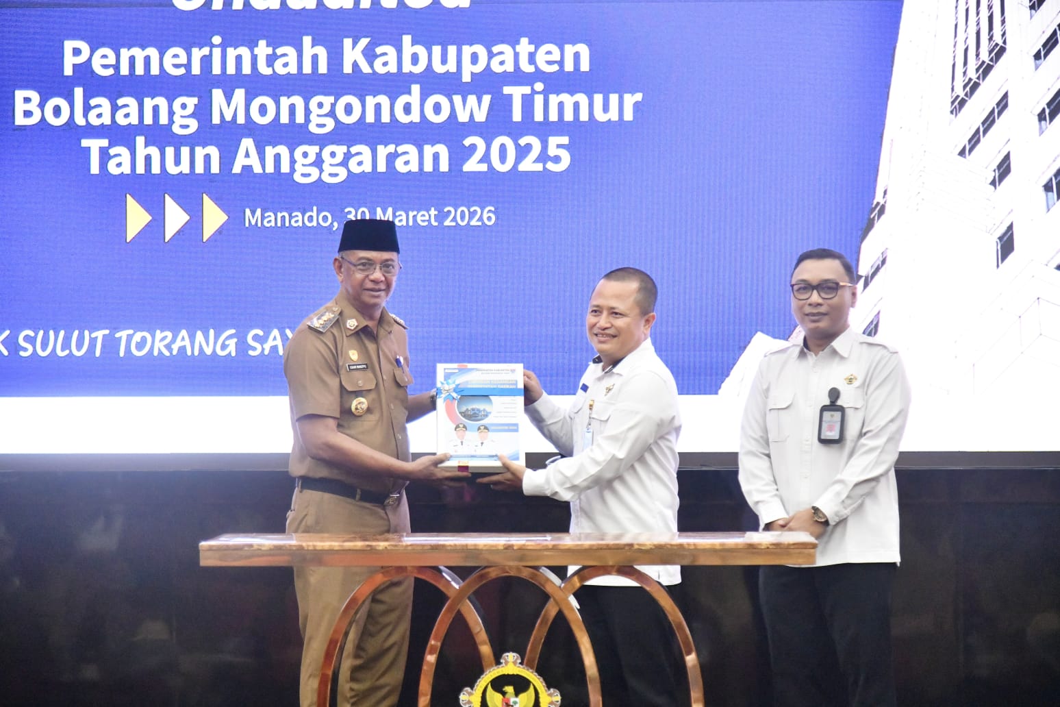 BoltimSulutkita.com–Bupati Bolaang Mongondow Timur (Boltim), Oskar Manoppo, menghadiri kegiatan penyerahan Laporan Keuangan Pemerintah Daerah (LKPD) Unaudited Tahun Anggaran 2025 untuk tingkat Provinsi dan Kabupaten/Kota se-Sulawesi Utara, yang digelar di Kantor BPK Perwakilan Provinsi Sulawesi Utara, Senin (30/3/2026).