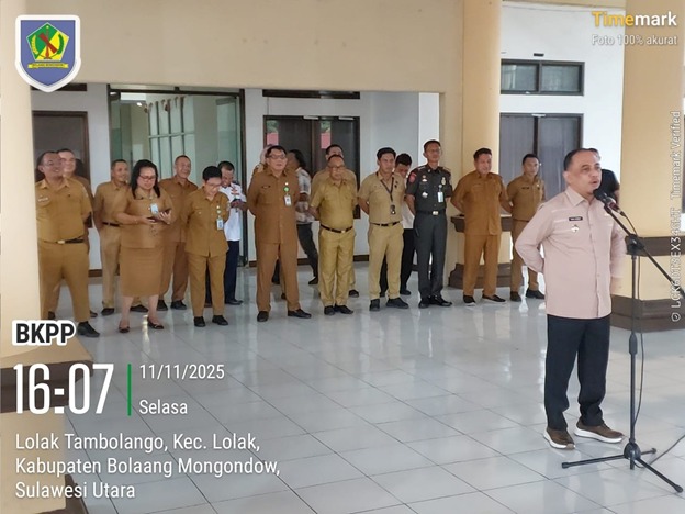 BolmongSulutkita.com – Bupati Bolaang Mongondow (Bolmong) Yusra Alhabsyi memimpin apel sore Aparatur Sipil Negara (ASN) pada Selasa (11/11/2025). Dalam arahannya, ia menegaskan pentingnya peningkatan disiplin kerja dan kehati-hatian ASN dalam bermedia sosial.