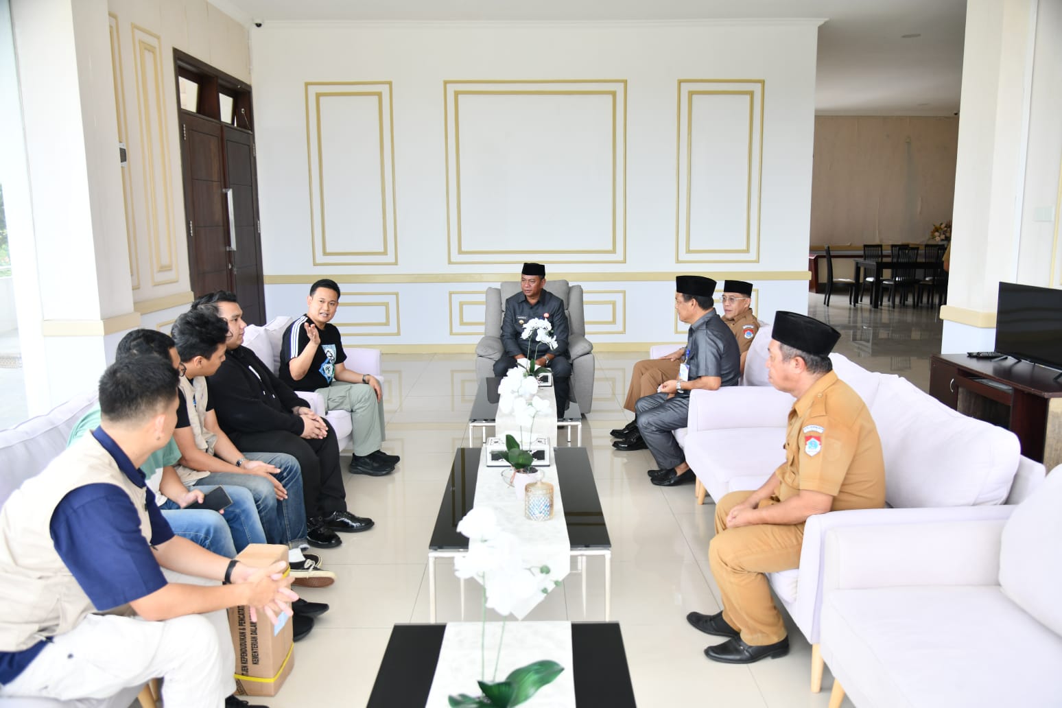 Bupati Boltim saat menyambut Ditjen Dukcapil RI di ruang kerjannya.