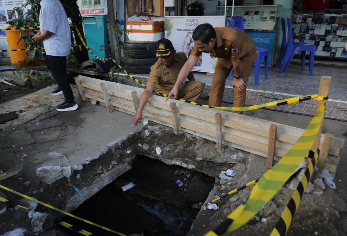 Turun langsung bersama dengan stakeholder, Wali Kota menemukan bahwa sumber masalah air meluber kepadanya jalan karena adanya penumpukan sampah dan sedimentasi yang sudah padat memenuhi jalur drainase sehingga air meluap melalui sela-sela beton penutup drainase.