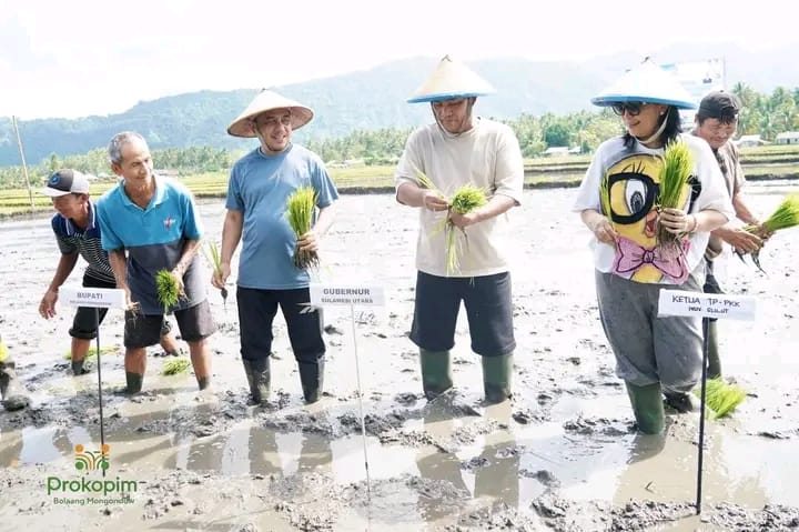 Wujudkan Ketahanan Pangan, Bupati Bolmong dan Gubernur YSK Kompak Tanam Padi Bersama di Desa Solog